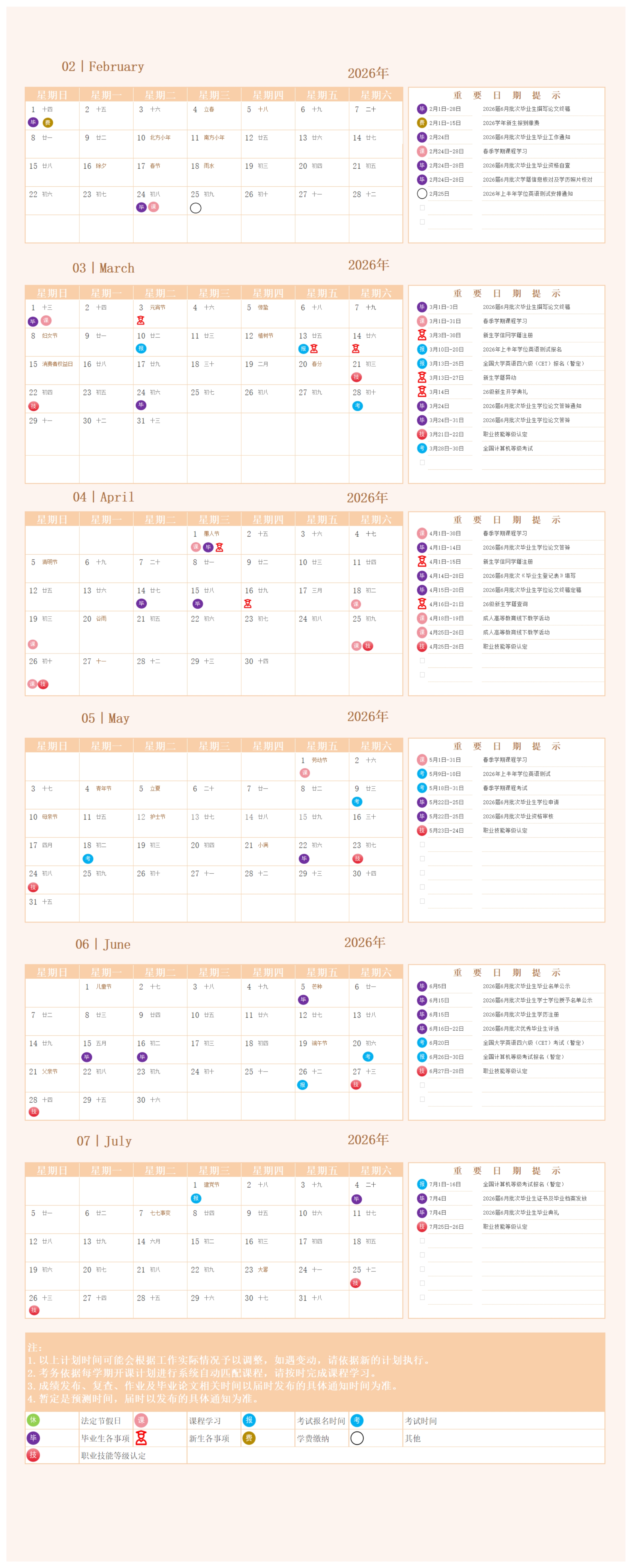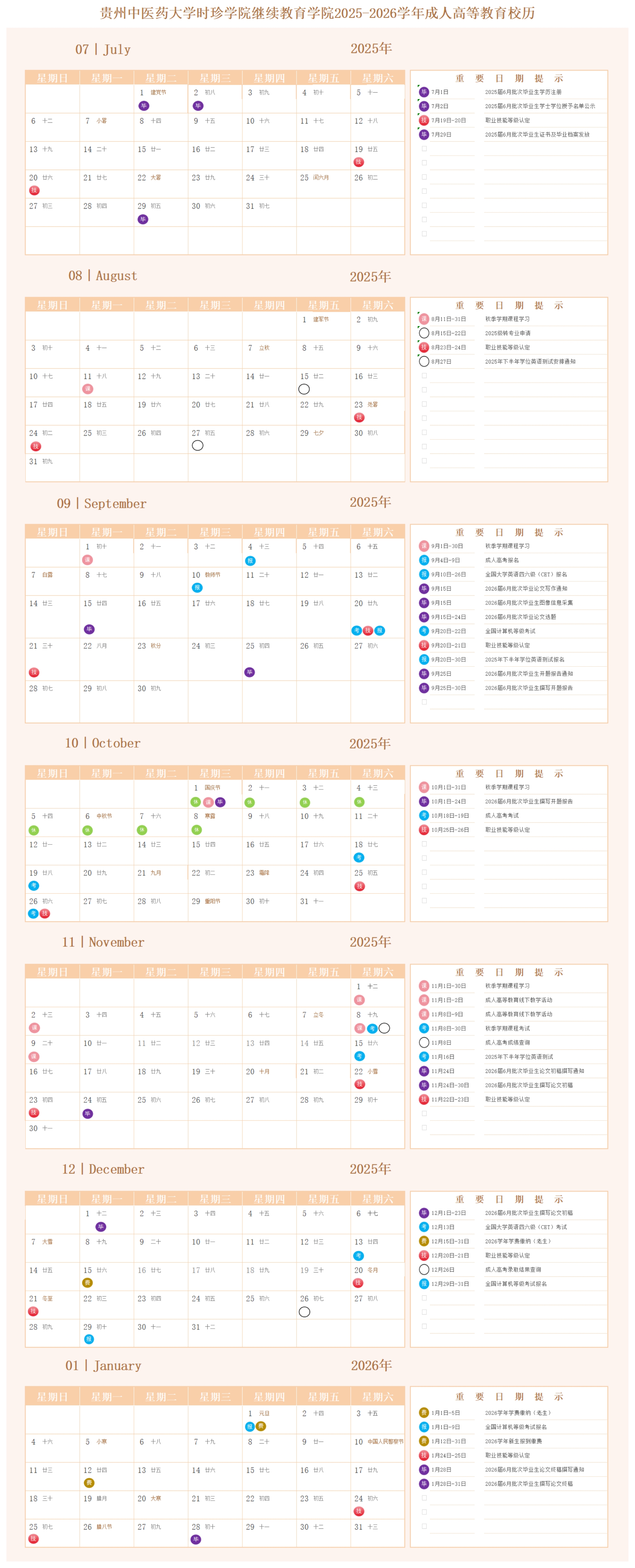 2025-2026学年成人高等教育校历